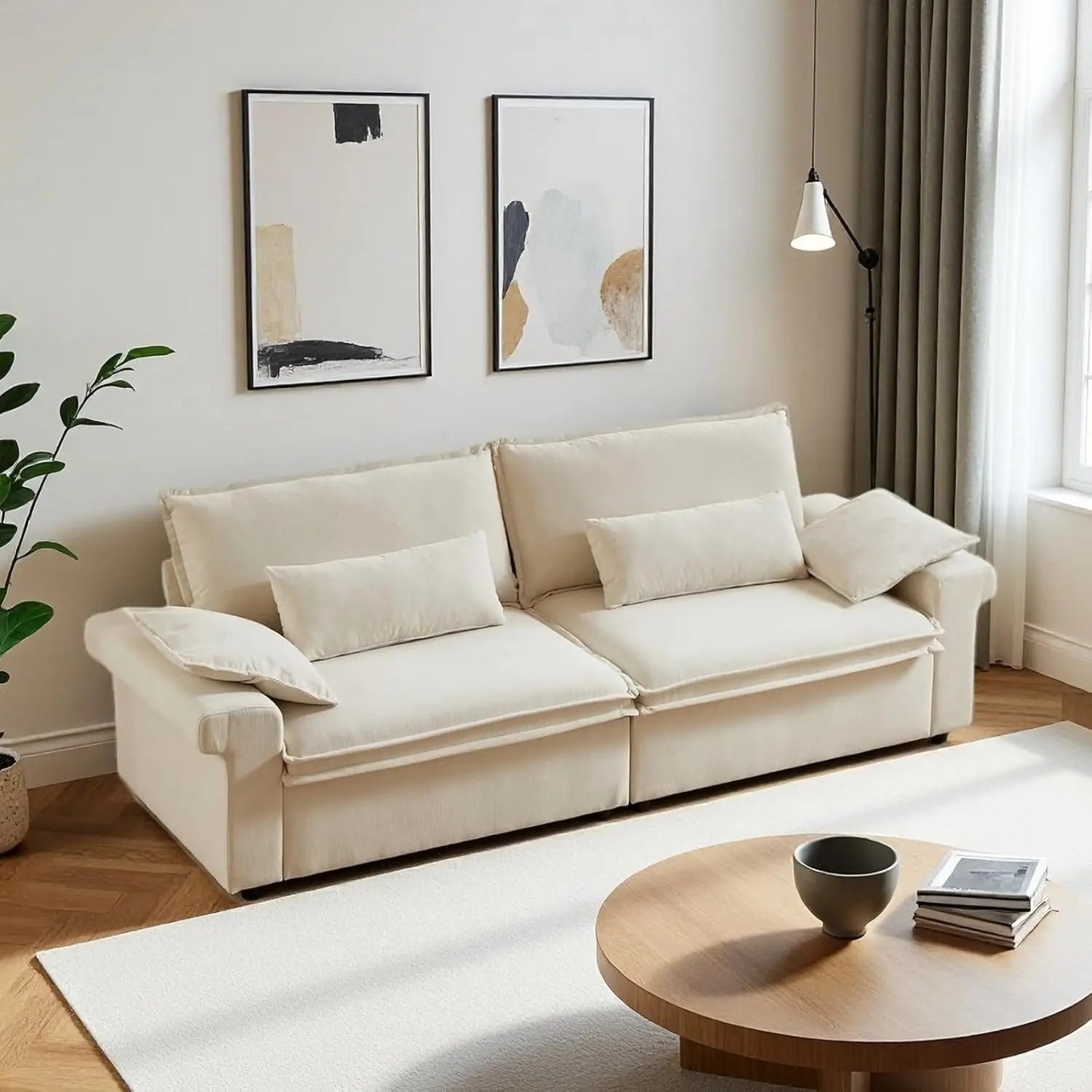 Transform your living room with a modern 3-seater chenille sofa that blends clean lines with everyday comfort.