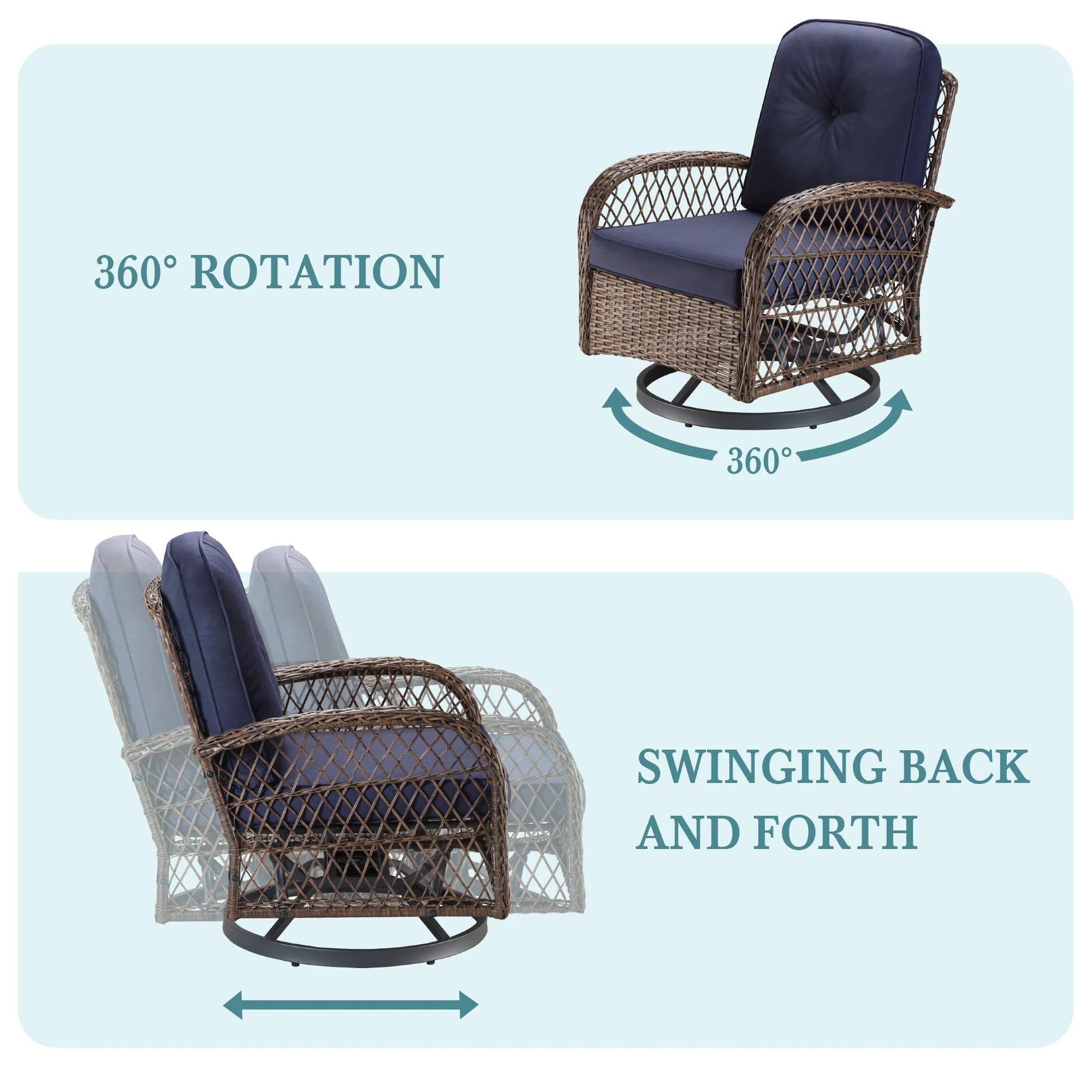 HOOMIC 3 Pieces Patio Furniture Set, Patio Bistro Set, Outdoor Rotating Rocking Chair Set, Cozy and Padded Cushions Alleiwe