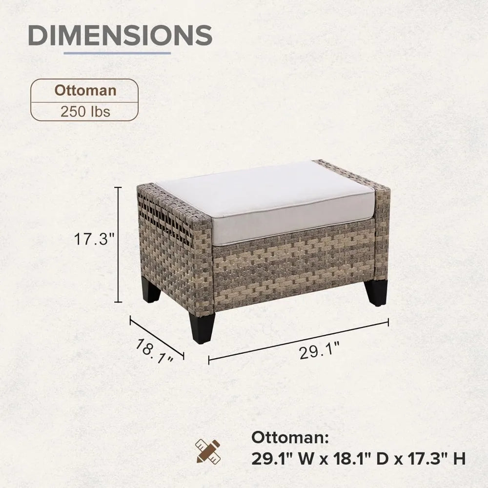 Modern 2 Piece Wicker Outdoor Ottomans, 2pc Patio Ottoman Foot Rest for Couch with Removable Cushions for Patio, Deck, Backyard
