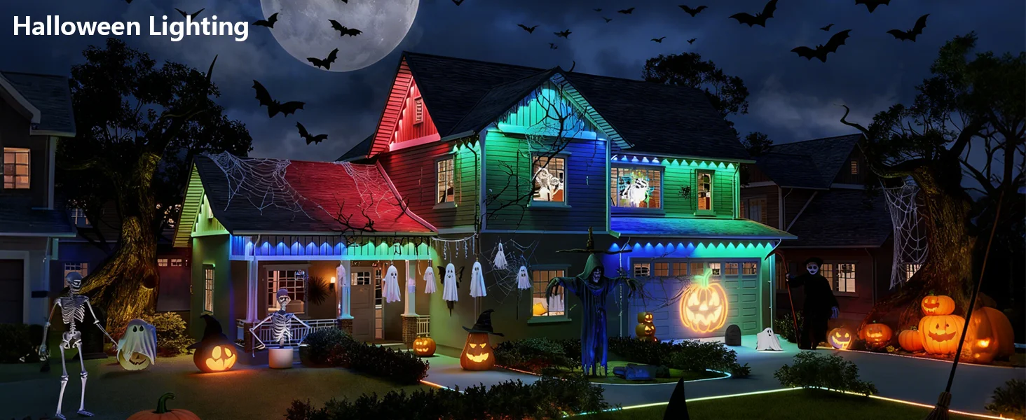 Smart Permanent Outdoor Lights Eaves Lights IP67 Waterproof Light String with App Remote Control Music Sync for House Roof Decor